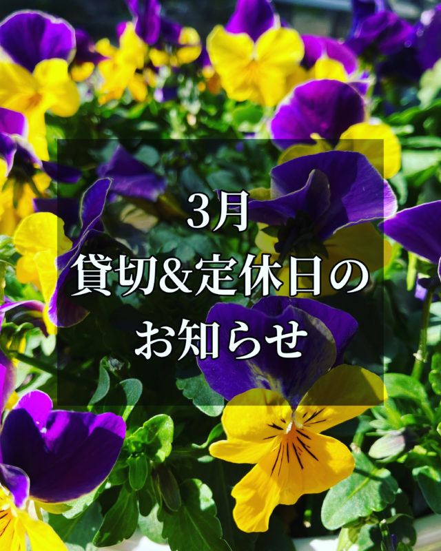 さて、ご案内が遅くなりましたが、今月の定休日と貸切営業日をお知らせ致します。
