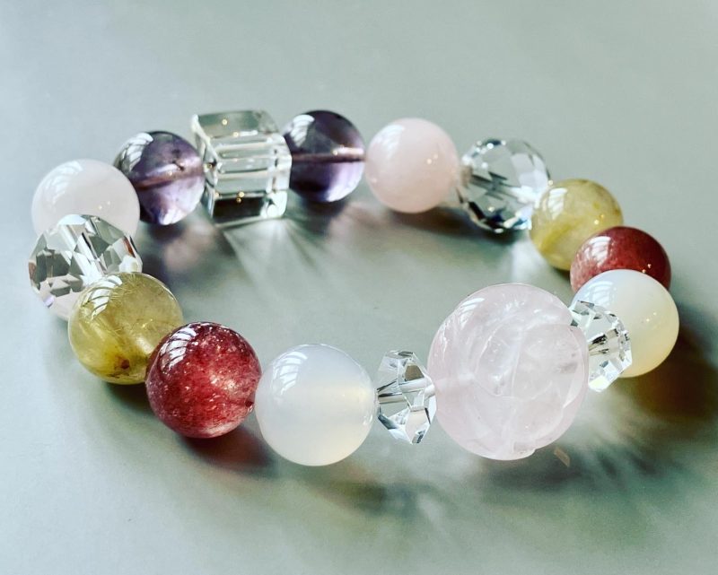 【ハート形水晶×カット水晶×ローズクオーツ×ラベンダーアメジスト】