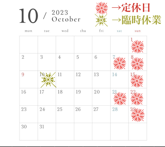 10月もみなさまのご来店を心よりお待ちしております🙇♀️