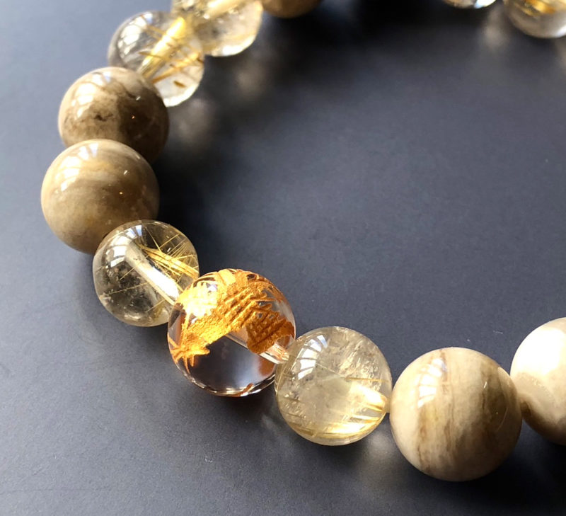 【鳳凰彫刻水晶×ゴールドルチル×シルバーリーフジャスパー】