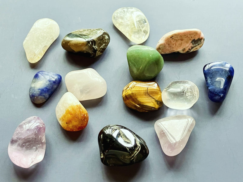 水晶、ローズクォーツ、アメジスト、タイガーアイ、ソーダライト、カーネリアン、めのう、オニキス、アマゾナイト、アフリカンジャスパー、レッドジャスパー、アベンチュリン、スモーキークォーツ、レピドライト、アクアマリン、シトリン、ルチル、ガーネット、エメラルド、ムーンストーン、ガーデンクォーツ等のいずれかが入っています。
