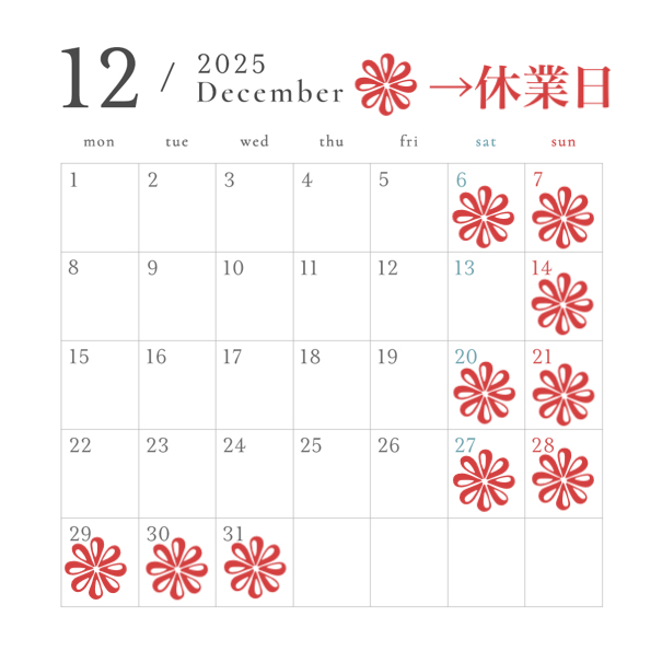 🎄12月休業日のお知らせ🎄
