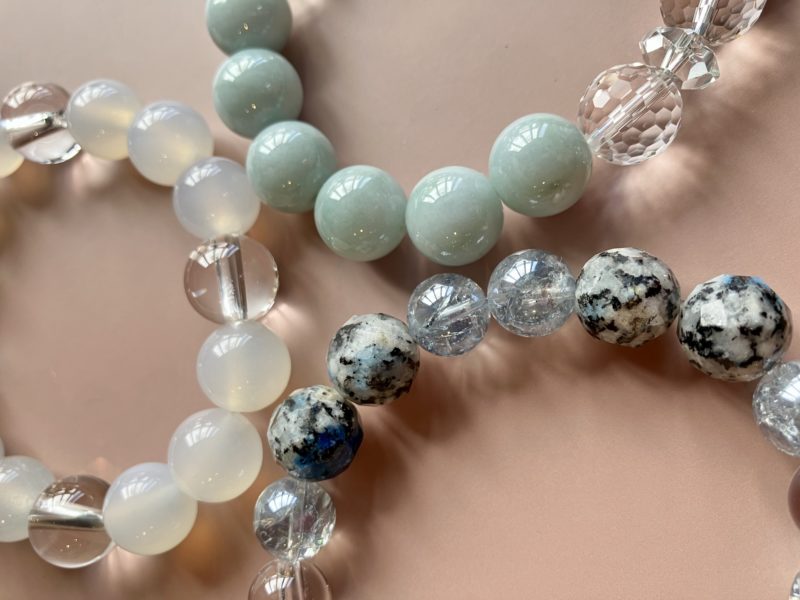 涼しげな天然石、「ブルージェード」、「クラック水晶」「カルセドニー」、5月の誕生石「翡翠」、その他、「イエローヘマタイトクォーツ」「レッドヘマタイトクォーツ」「ゴールデンルチルクォーツ」などなど。